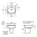 Washbasin wall mounted using E0157 wall fixing set with semi-pedestal screwed to wall with brackets supplied or for full pedestal mounted using 2 screws through the back of the basin (not supplied)