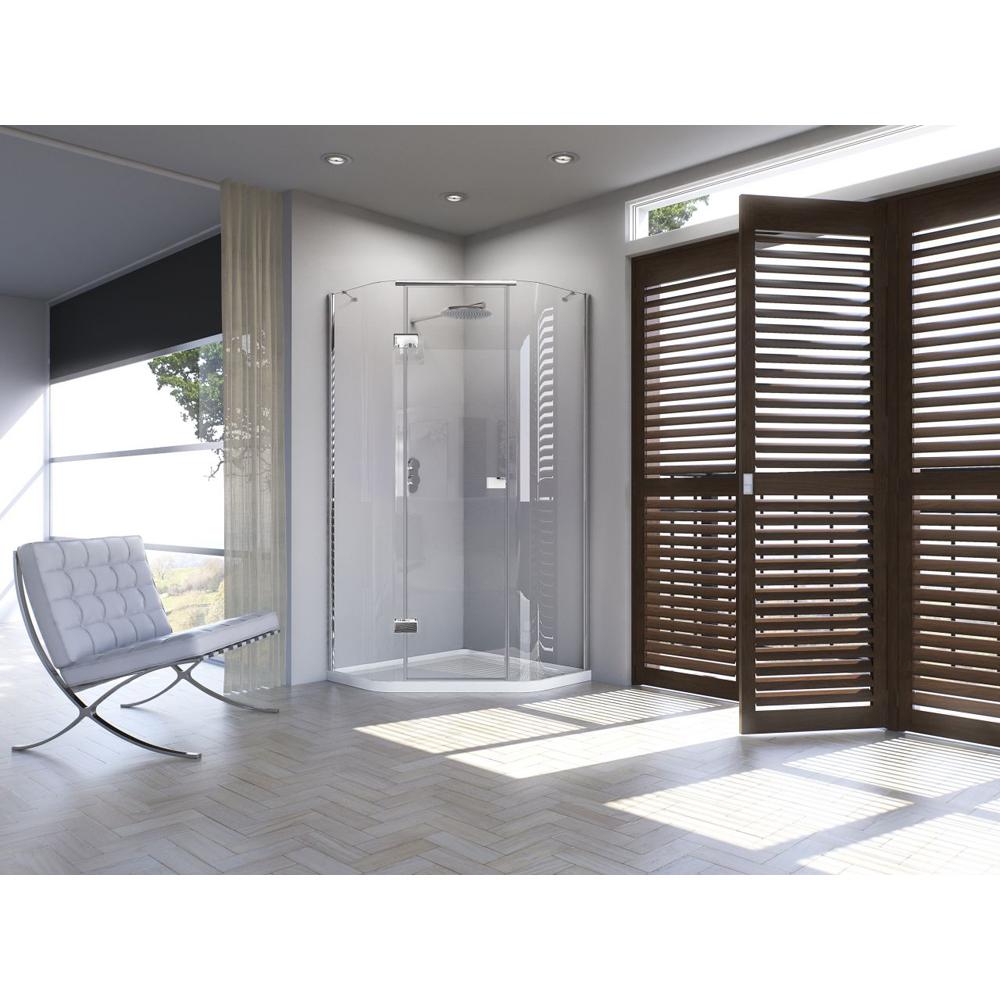 Harmonious curved Glass panels are held securely in a specially designed channel integrating the Shower Enclosure glass and the Shower Tray, avoiding the need for silicone sealant or extra framework where the panel meets the Shower Tray.