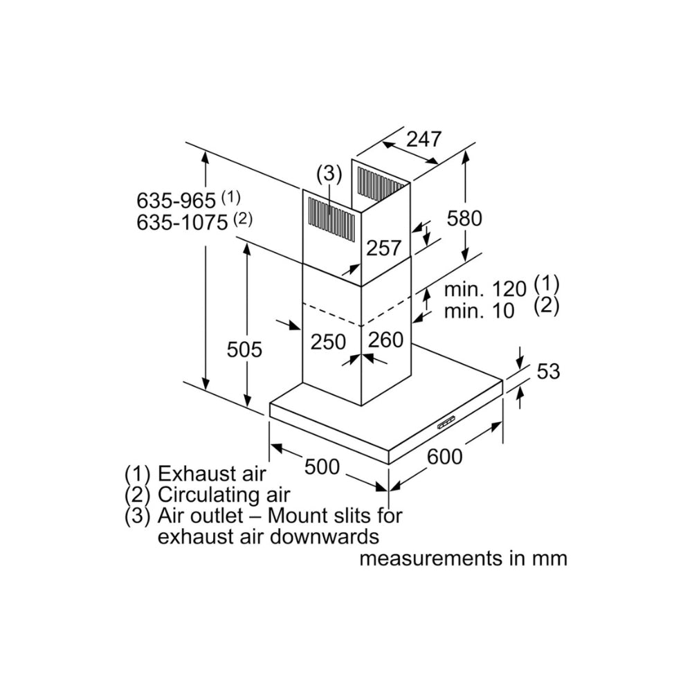 Height Of Chimney (mm) 635-965mm Ducting, 635-1075mm Recirculating
