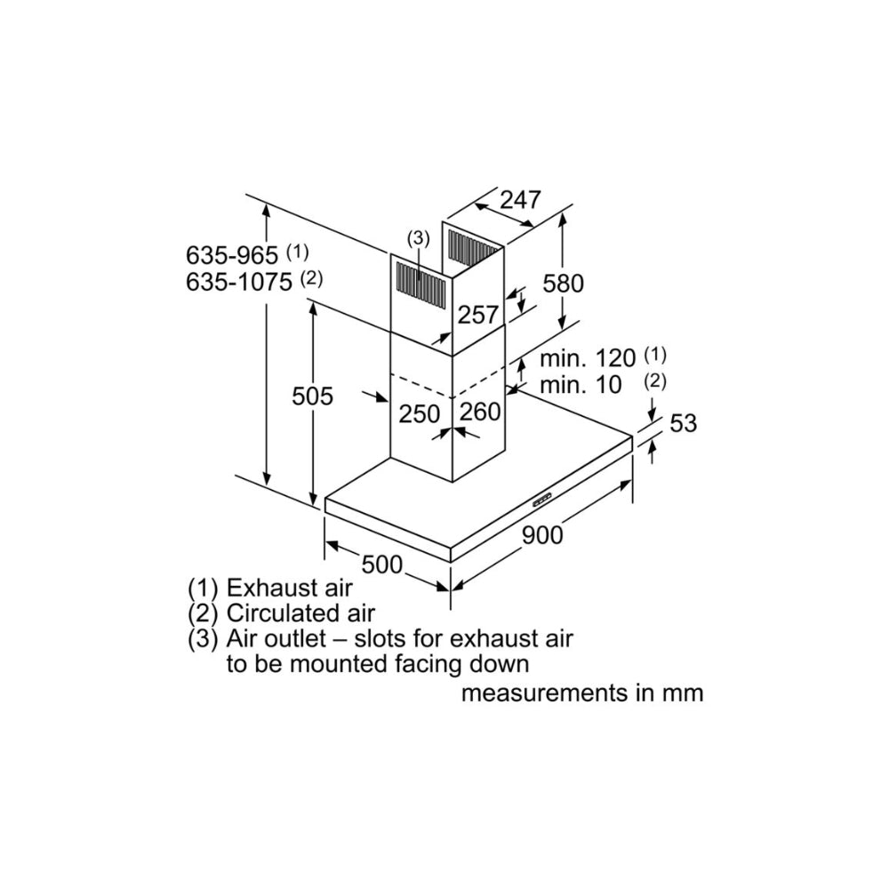 | Height Of Chimney (mm) | 635-965mm Ducting, 635-1075mm Recirculating |