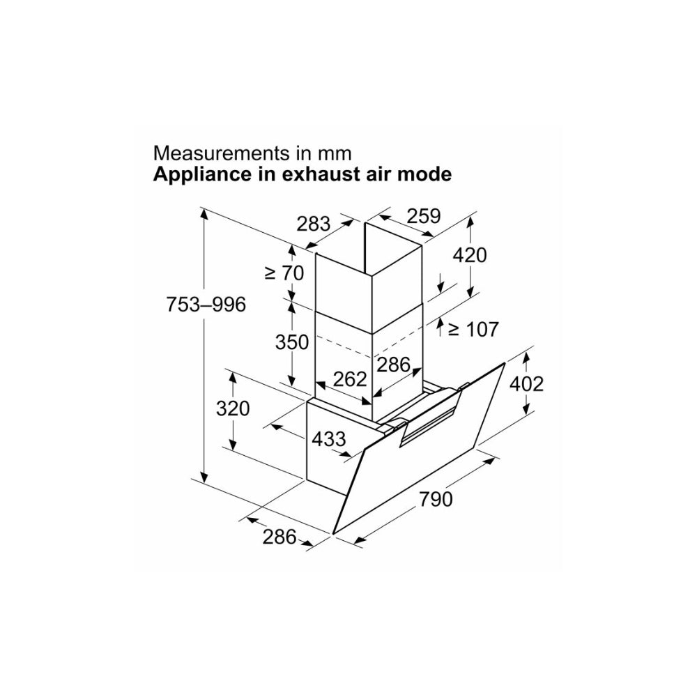 Height Of Chimney (mm) 753-996mm Ducting, 790-1083mm Recirculating