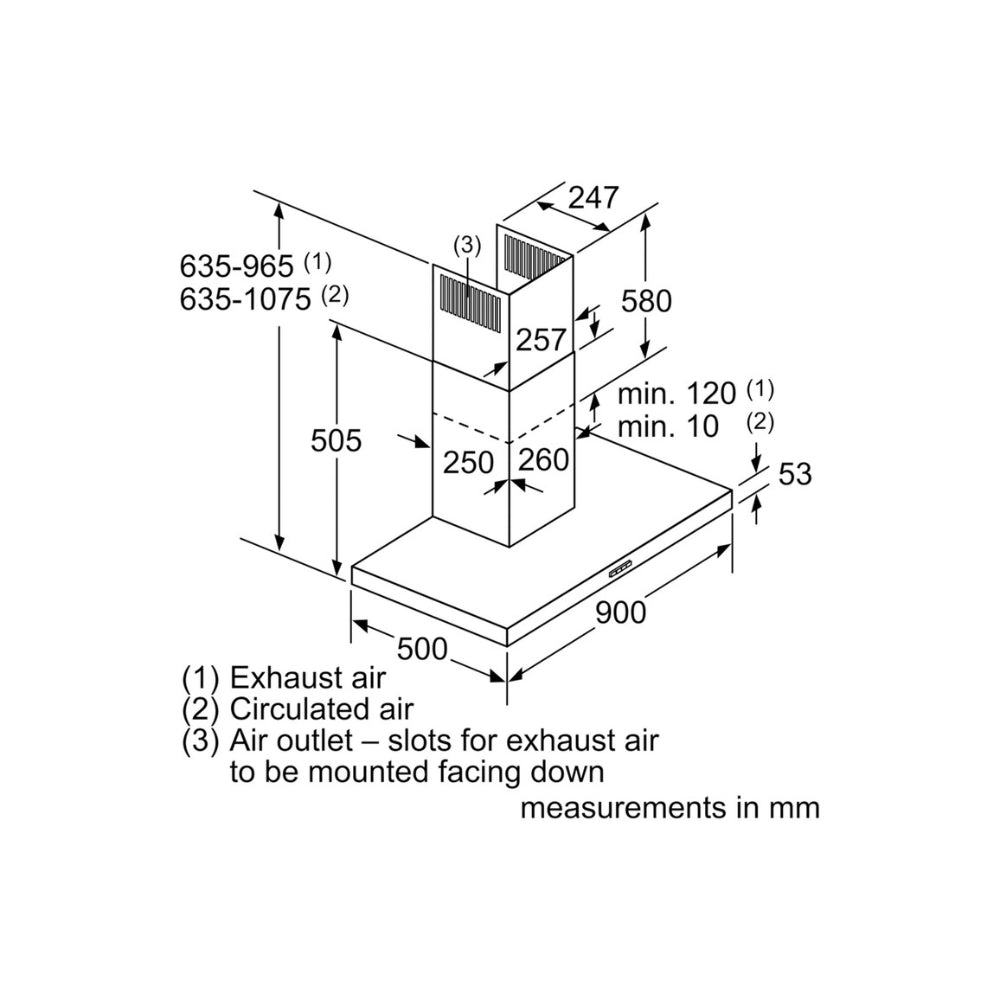 Height Of Chimney (mm) 635-965mm Ducting, 635-1075mm Recirculating