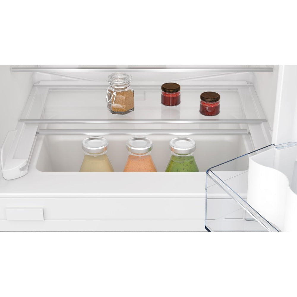 - Safety glass shelves happily shoulder generous loads of delicacies in your fridge