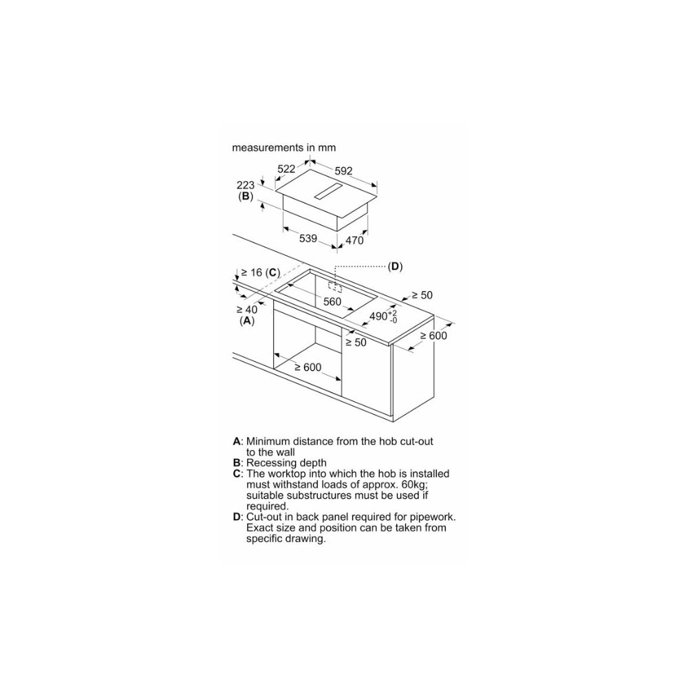 - Dimensions: H 223 x W 592 x D 522mm