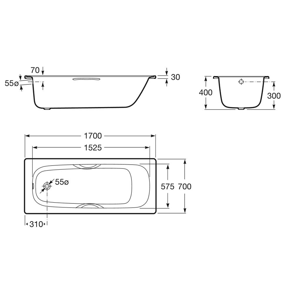 Roca Carla 15/16/1700mm Single Ended Bath with Anti-Slip & Grips