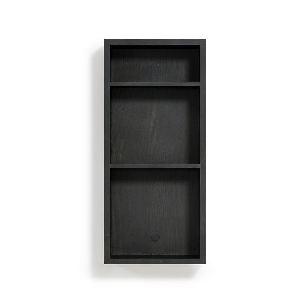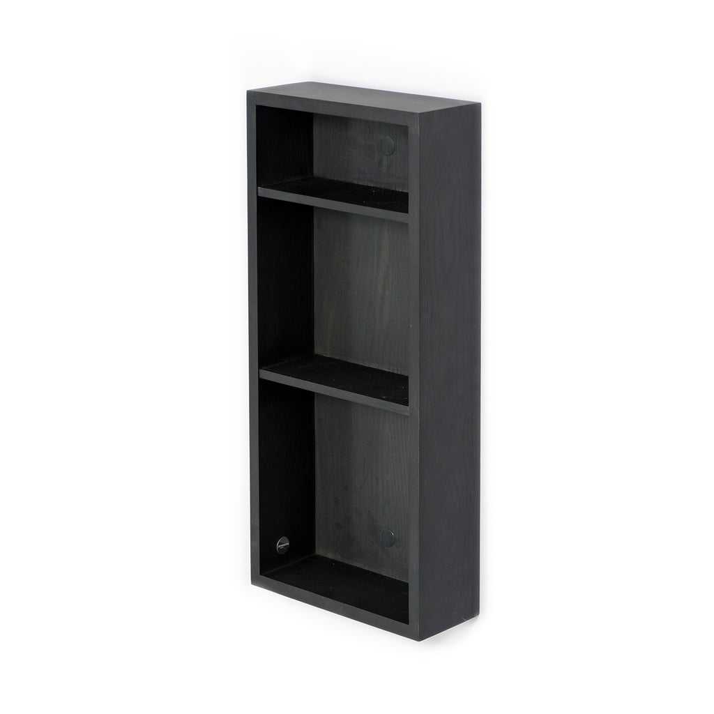 The fixed shelves are spaced to make best use of the room available. Stores small, medium and taller items comfortably. The Slimline box shelf is made from sustainably harvested, natural American white oak and oak veneers, selected for their warm colour, beautiful grain pattern and traditional hardwood durability. All edges look crisp but are carefully hand sanded to make them soft to the touch. Finished with a matt, water resistant lacquer. Max load per shelf: 2kg.