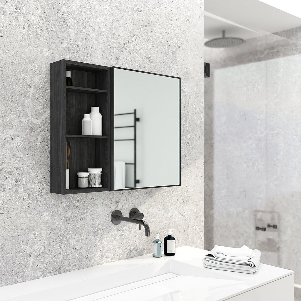 The Slimline box shelf is designed to be fixed either next to (or in between two of) our best-selling Dark Oak Slimline 550 Bathroom Mirror Cabinet. The box shelf extends your storage opportunities offering flexibility. For wider wall spaces, this is an elegant way to create a suite of matched designs. Open shelves provide additional storage and are a place to display decorative products or give greater accessibility to more frequently used items.