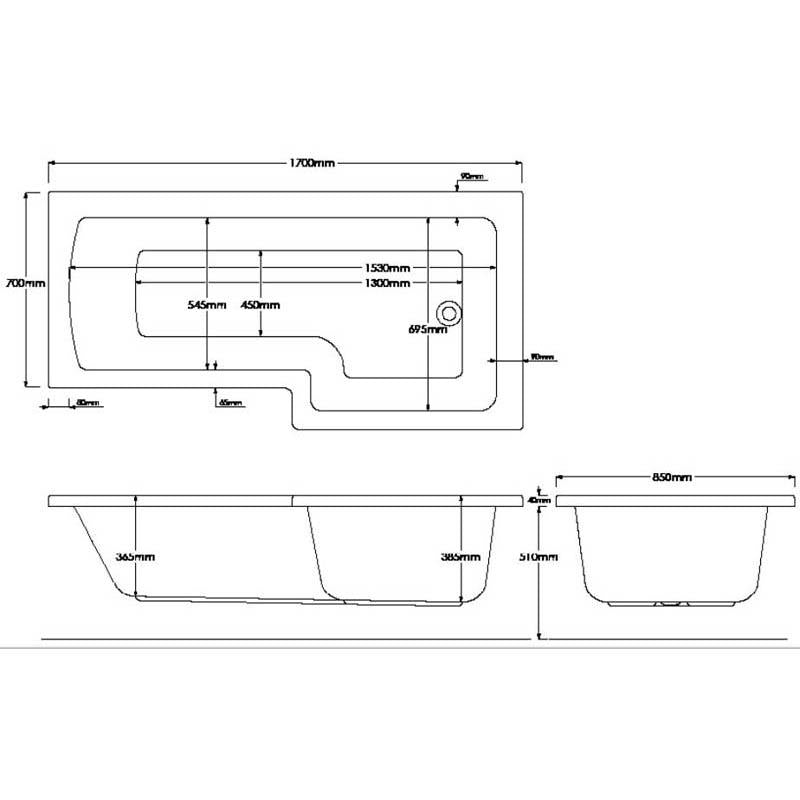 - catalogue Description: Sommer L Shaped Shower Bath 1700 x 850/700mm - Left hand - White
