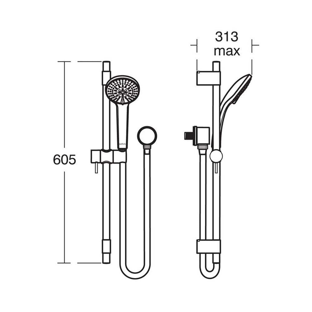 Borbera rainshower kits include three versions: handspray, fixed head or dual. The ranges distinctive feature is its slim, minimal shower head, available in a circular or square design. Options include handsprays of varying diameters and rails of different lengths.