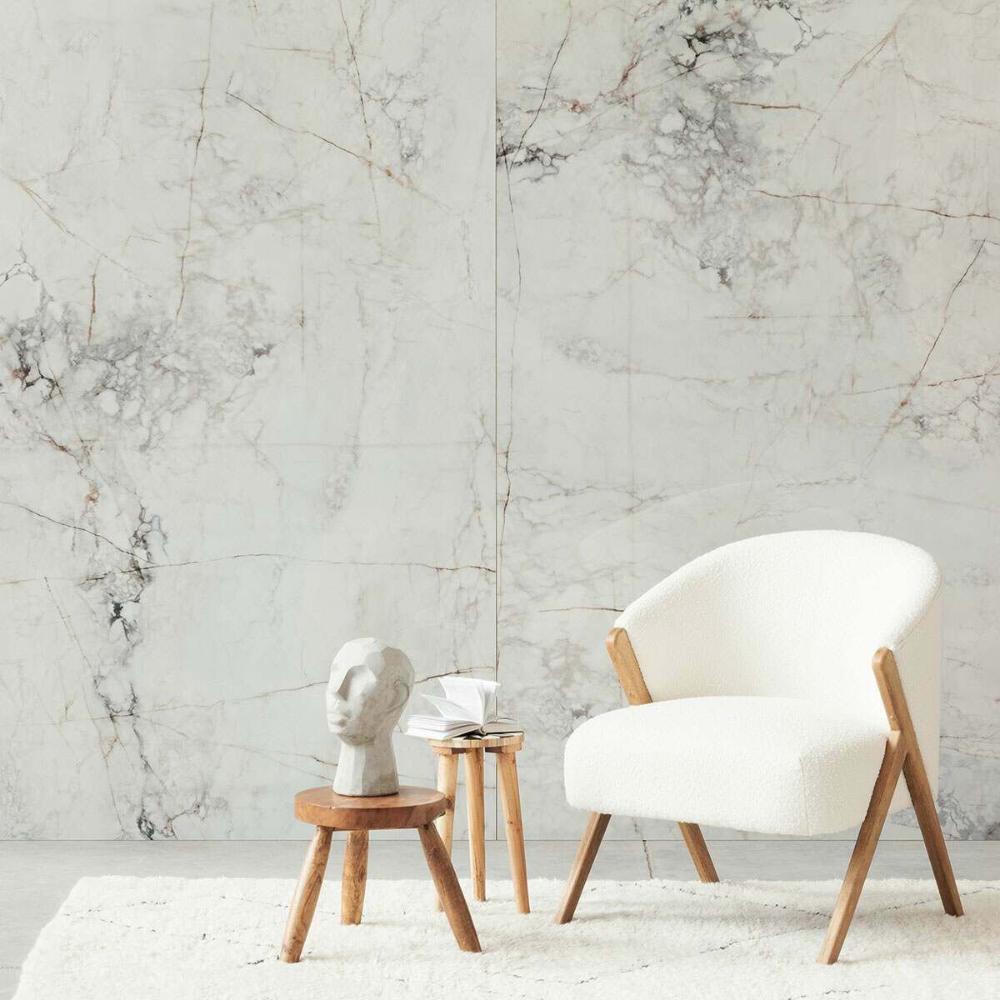 The Balance White tile features a striking marble effect with bold, multi-tonal veining that delivers an authentic and luxurious aesthetic, ideal for elevating interior wall and floor designs. Crafted from strong porcelain with a polished finish, this large 1198x598mm tile is perfect for walls and floors, offering 18 unique face variations and rectified edges for seamless installation.