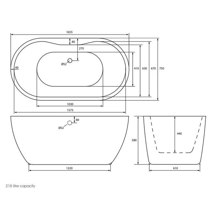 - Size: 1655 x 750 x 580mm. 218 litre capacity - White