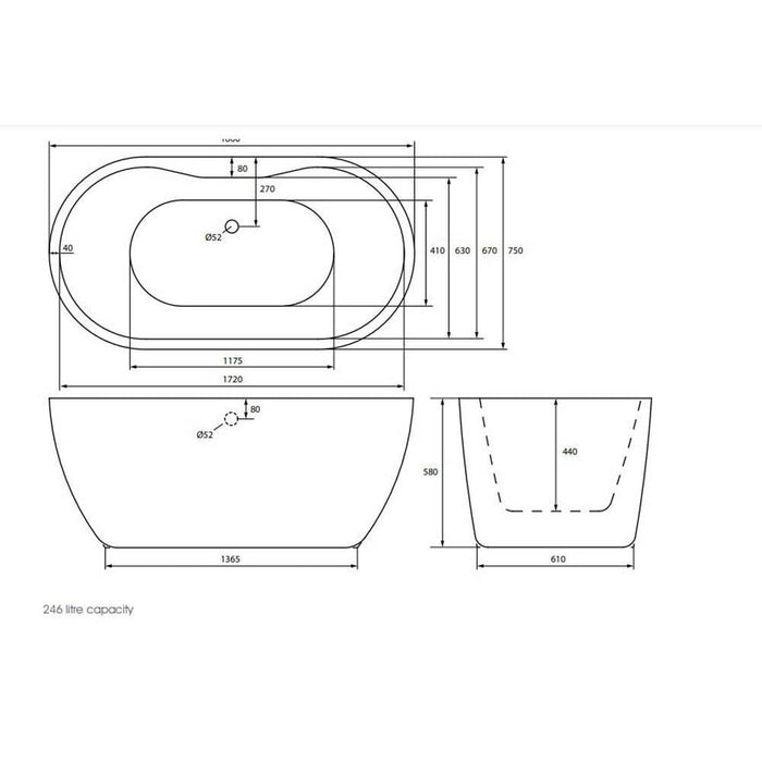 - Size: 1800 x 750 x 580mm. 246 litre capacity - White